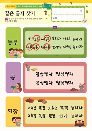 동네에서 놀며 부르던 노래 활동지 우리 동네에서 나는 소리 만들기 |