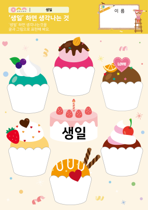 '생일' 하면 생각나는 것 활동지 케이크 메모지 만들기 |