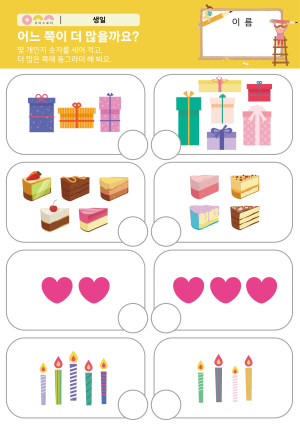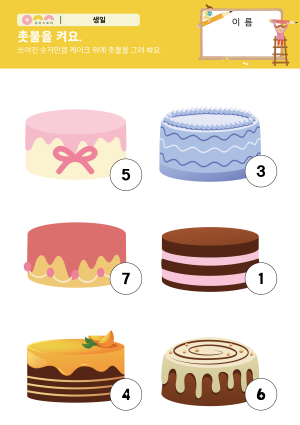 어느 쪽이 더 많을까요? 활동지 촛불을 켜요. 활동지 케이크 패턴 놀이 만들기 |
