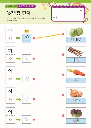 씨앗으로 길이를 재요. 만들기 봄을 건강하게 지내요 활동지 푸른 산을 만들어요 활동지 맛있는 채소다! 활동지 |