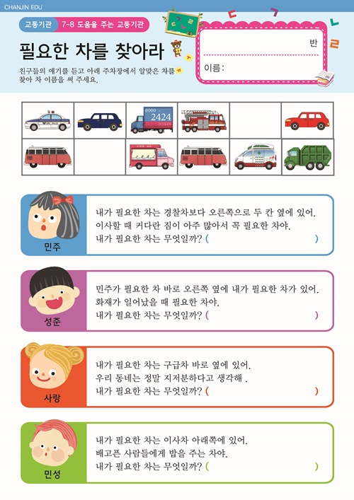 도움을 주는 교통기관 활동지 일하는 자동차 암호 풀이 만들기 |