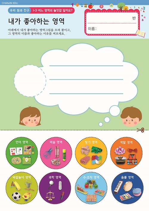 우리 반 놀이 영역의 특징을 알아보고 우리 반에 필요한 약속을 함께 정해본다. |