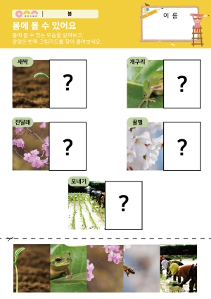 봄을 건강하게 지내요 활동지 푸른 산을 만들어요 활동지 맛있는 채소다! 활동지 나무의 길이를 재어보아요. 만들기 |