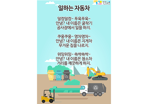 [동시] 일하는 자동차 PPT , 환경구성 [동화] 고마운 자동차들 E-BOOK , PPT , 활동지 , 동요/음원 |