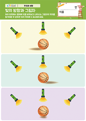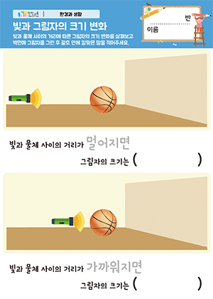 빛의 방향과 그림자 활동지 빛과 그림자의 크기 변화 활동지 |