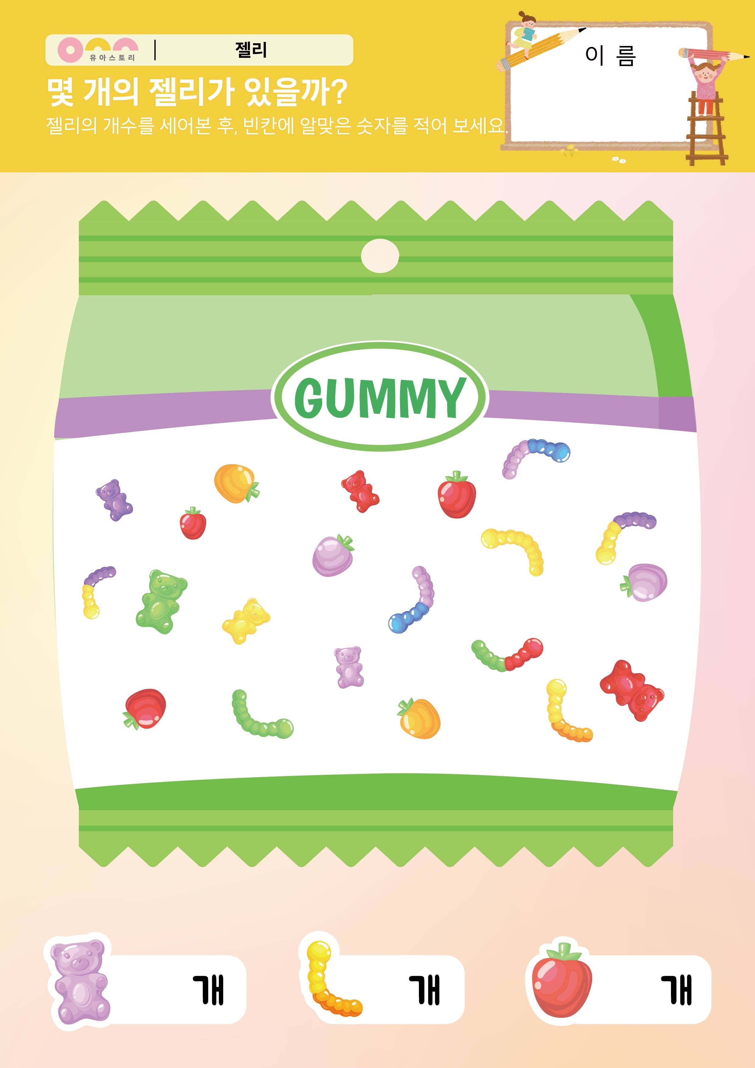 젤리 오목 만들기 젤리를 포장해요 활동지 몇 개의 젤리가 있을까? 활동지 |