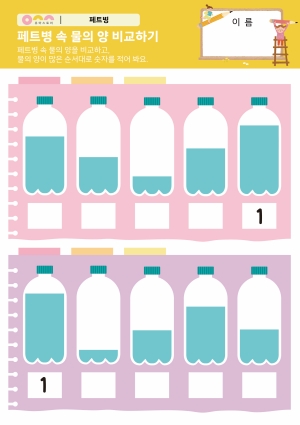 재활용품 분리배출 PPT , 활동지 페트병 속 물의 양 비교하기 활동지 |