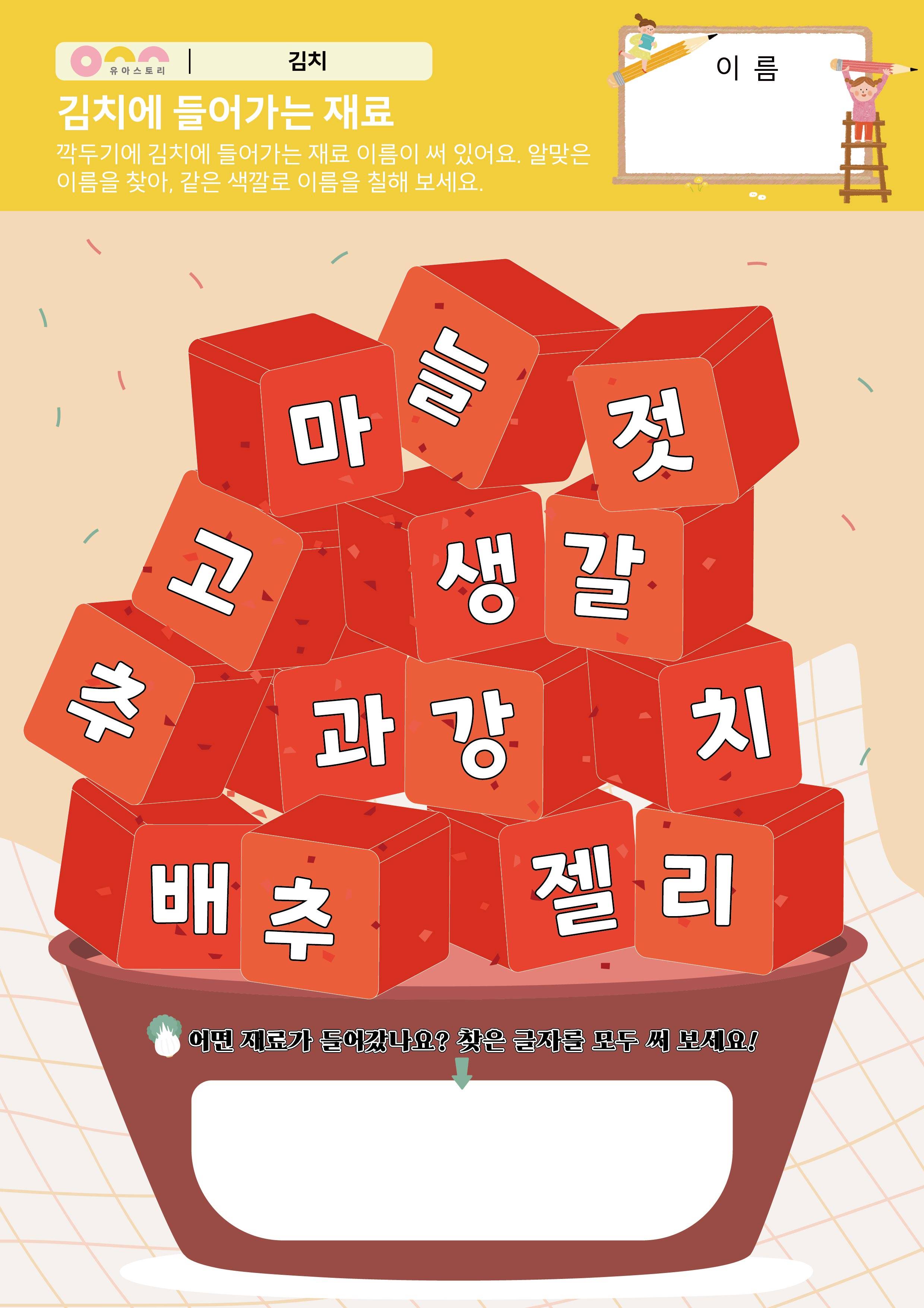 김치 글자 콜라주 활동지 김치에 들어가는 재료 활동지 |