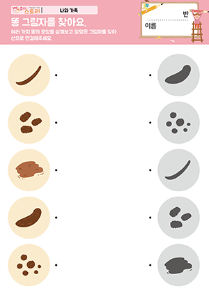 똥 그림자를 찾아요. 활동지 똥이 잘 나오는 음식, 안 나오는 음식 분류하기 만들기 여러 가지 똥 패턴 놀이 만들기 |